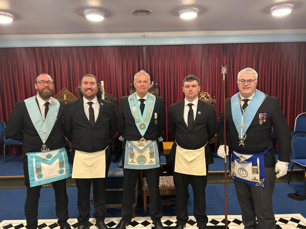 Abbot Baldwin Lodge recently achieved a first for the Lodge, with a double initiation, and it was received extremely well by all who attended. The WM, WBro Richard Day, conducted a faultless ceremony, having quite the year already with the Lodge 50-year celebrations. On hand to assist were JD, WBro Nigel Gregory, who provided the candidates with experienced Grand Officer assurance, and SD Bro Andrew Martin.