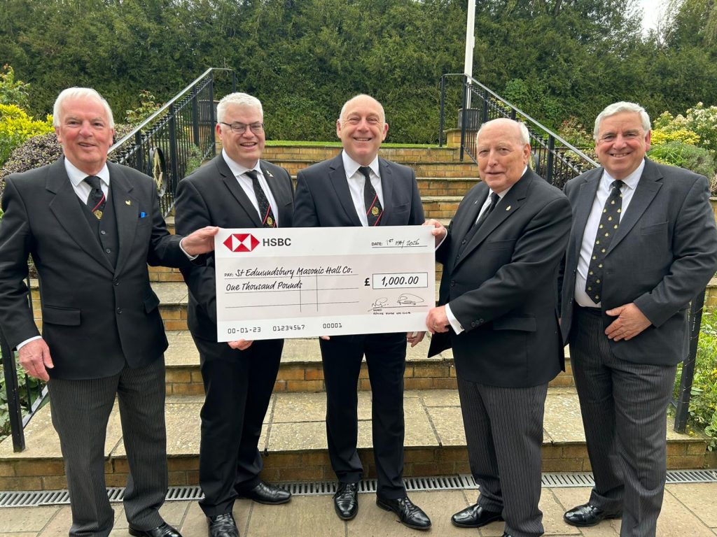 May 1st 2026 really did prove to be a “Red Letter Day” for the promoters of the Ashlar House 100 Club. It was on this date that the they paid over their cheque of £1,000.00 to The St Edmundsbury Masonic Hall Company. It has taken since September 2025 to accumulate sufficient finds from the Draws to make this payment, and it is with great pleasure that we make this donation for assistance with, and application to the Company’s capital debt repayment programme.